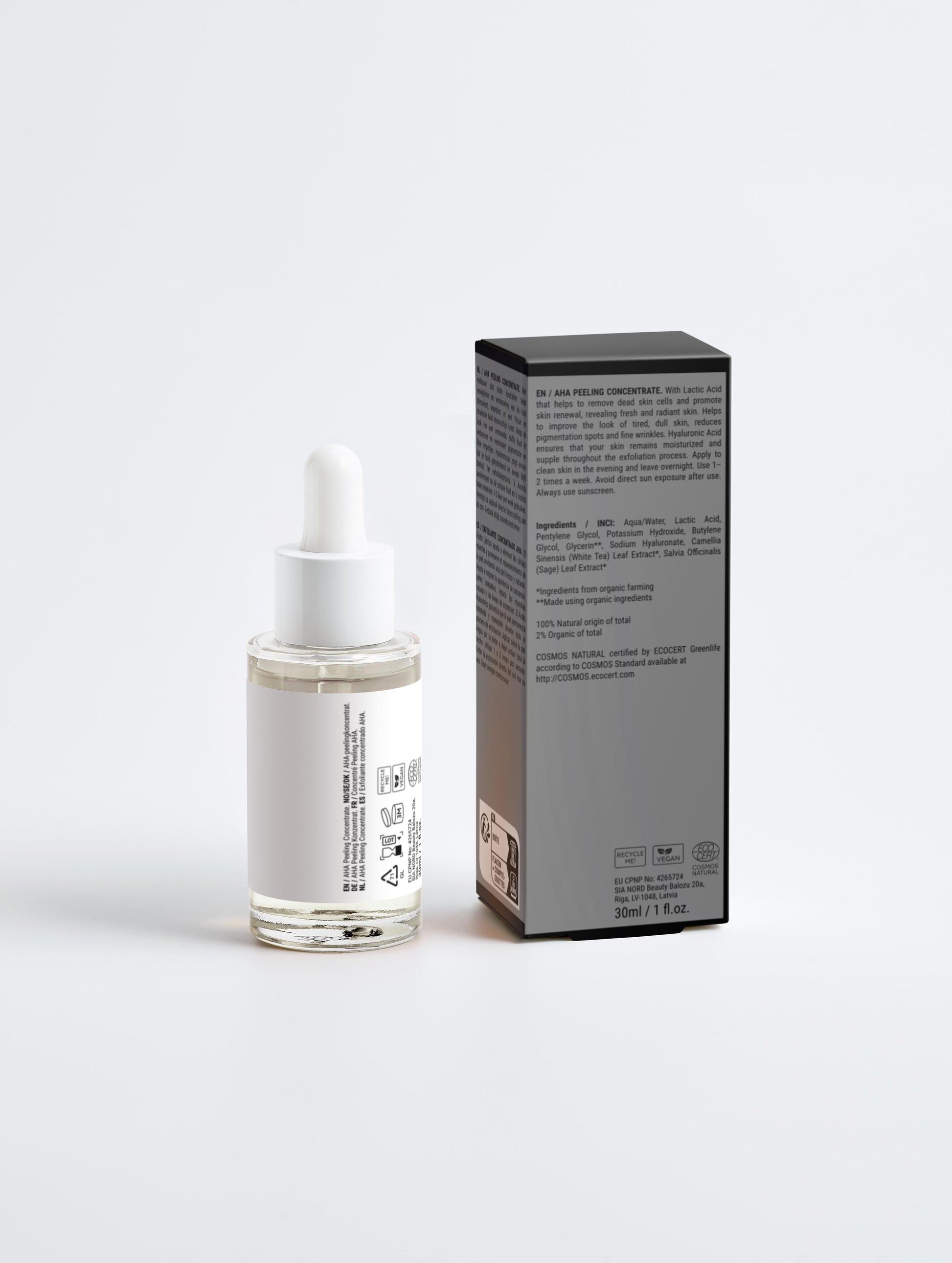 10 % Milchsäure, 1 % Hyaluronsäure, Salbeiextrakt, Weißer Teeextrakt